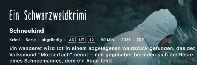 Das ZDF strahlte einen "Schwarzwaldkrimi" mit dem Titel "Schneekind" aus.